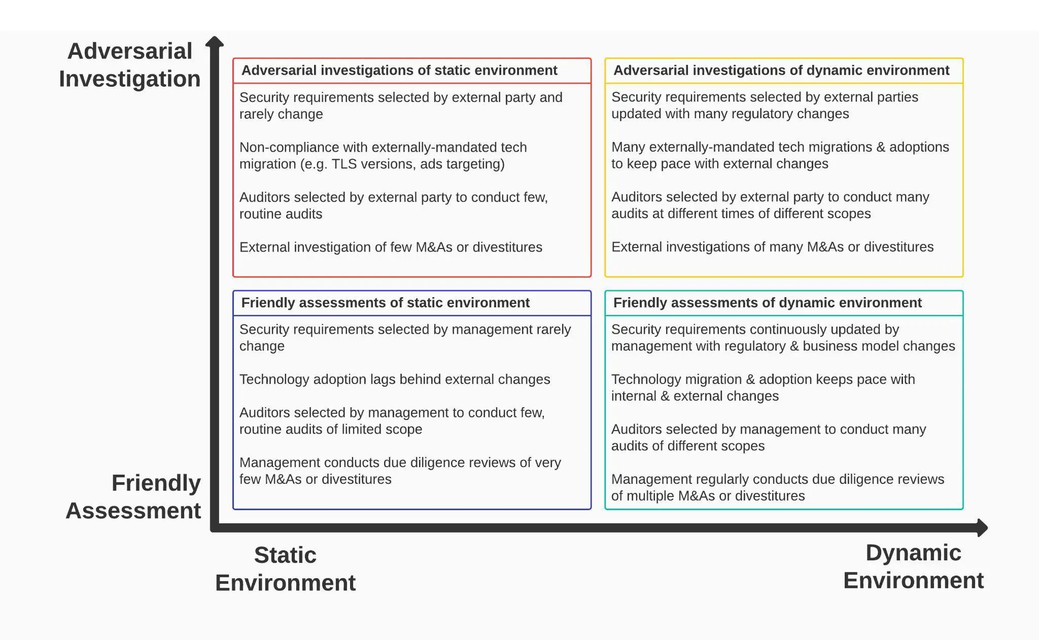 Traditional risk-based approaches assume you can predict failure points and mitigate them. But when dealing with large-scale, hybrid, or proprietary infrastructure, compliance teams must shift toward trust-based assurance, where the focus is on ensuring confidence in security controls, even when risks are unknown.