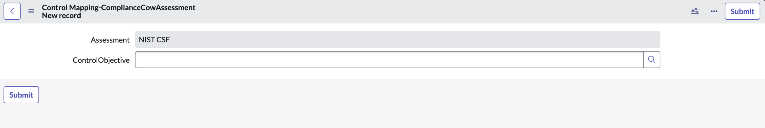 6.3 Click on the submit button to add the control objective to the assessment. Several control objectives can be added to the assessment.